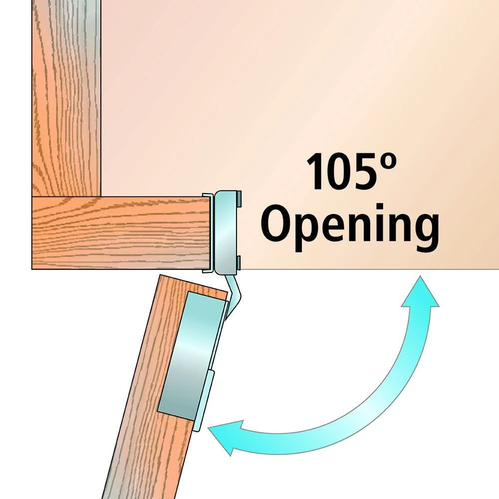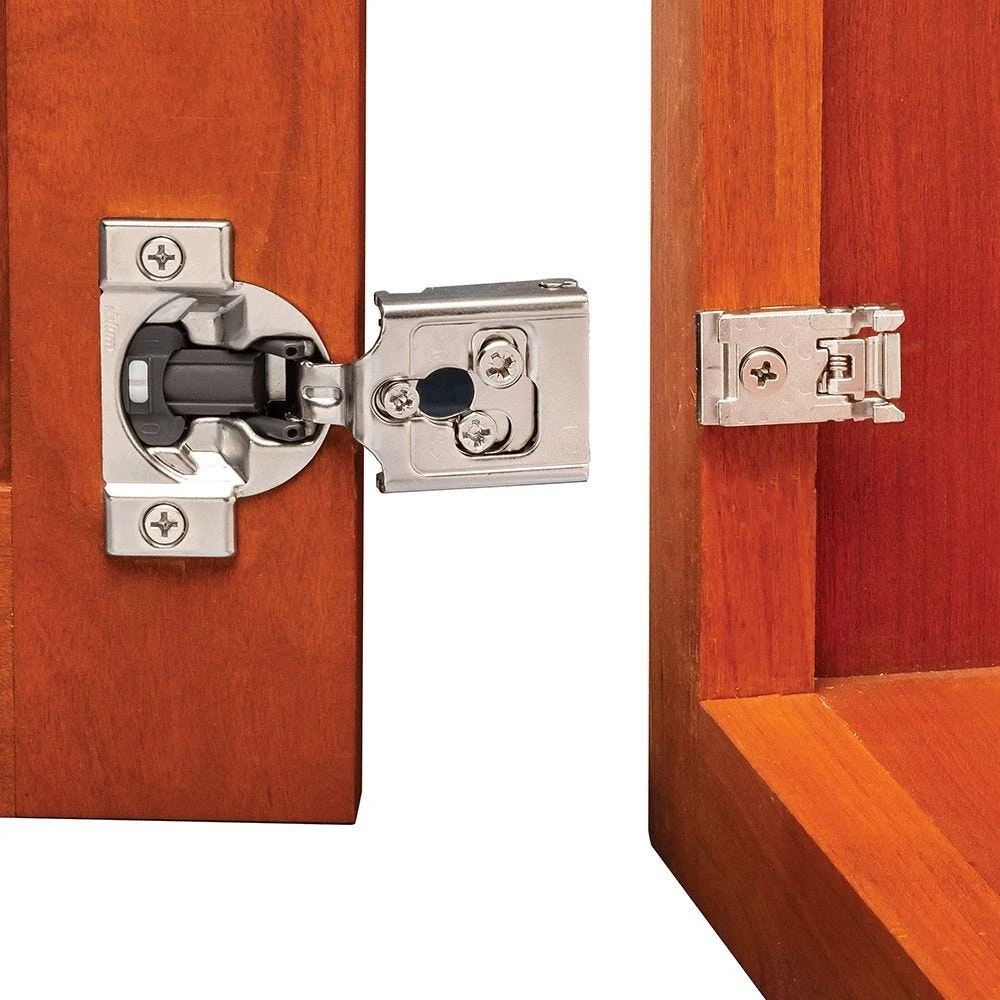 - Shallow 7/16” cup depth leaves more room for edge profile on doors without penetrating cup hole