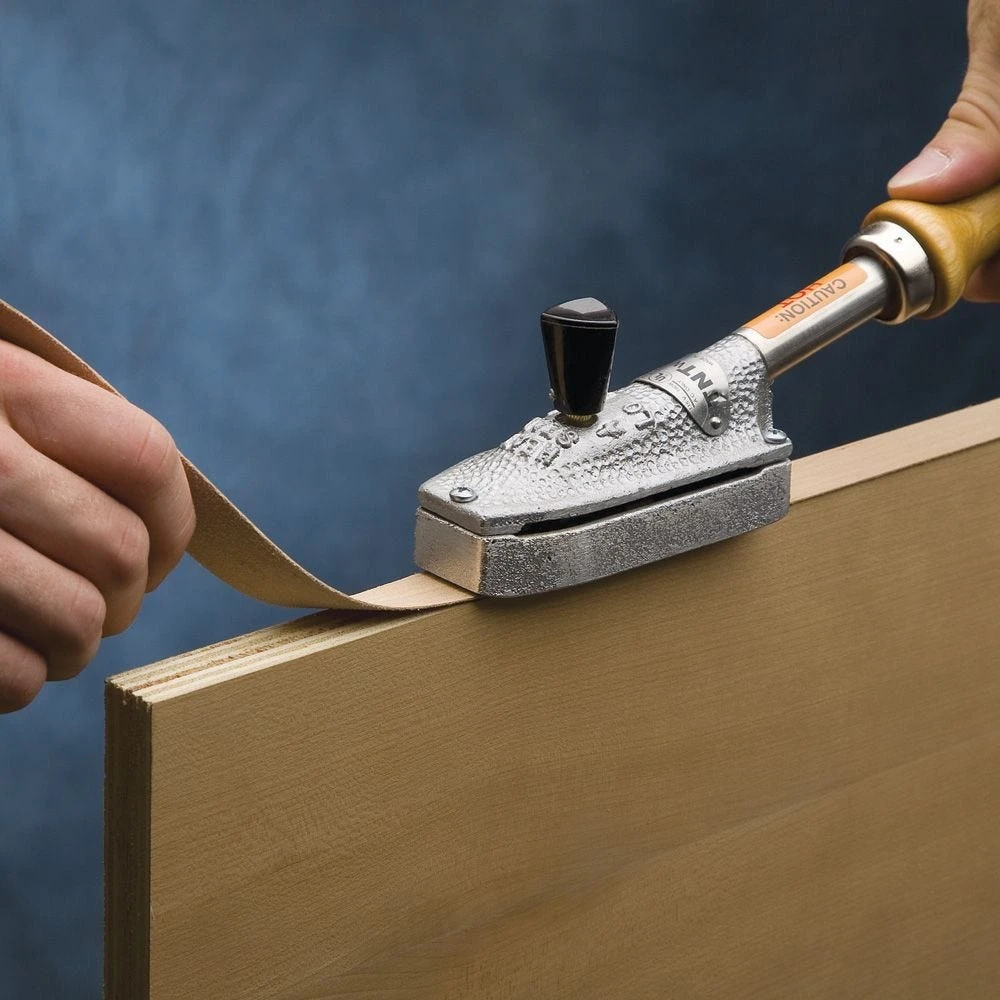 An ordinary household iron is all you need to apply this premium hot-melt edge banding. Just position the edging on the edge of your plywood or other substrate and smooth it with a few passes of an iron or slide it through an edge-banding machine. Suitable for straight-line edges as well as contours. Bandings are impregnated with a high-speed hot-melt glue that creates a permanent bond. They also are pre-sanded and readily accept stains and finishes. Both solid wood edge bandings and melamine edge bandings are available. Available in a variety of wood species – some of them difficult to find in edge bandings.