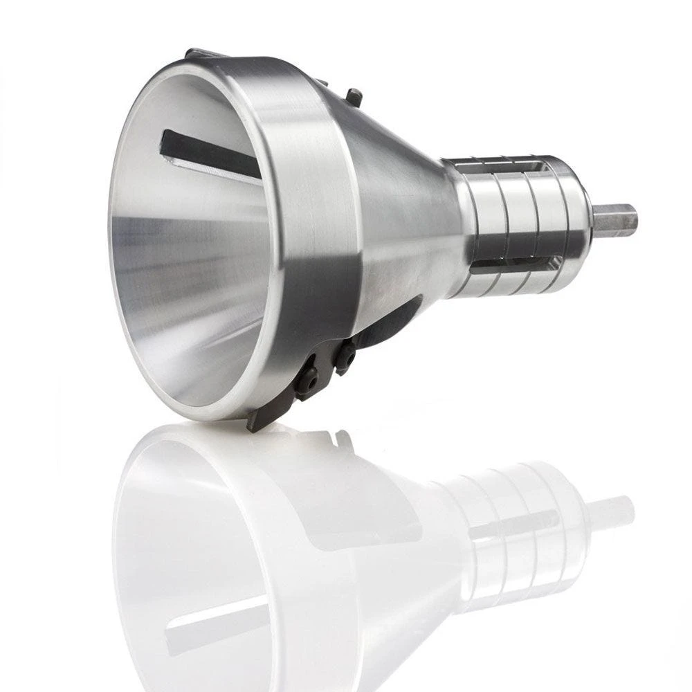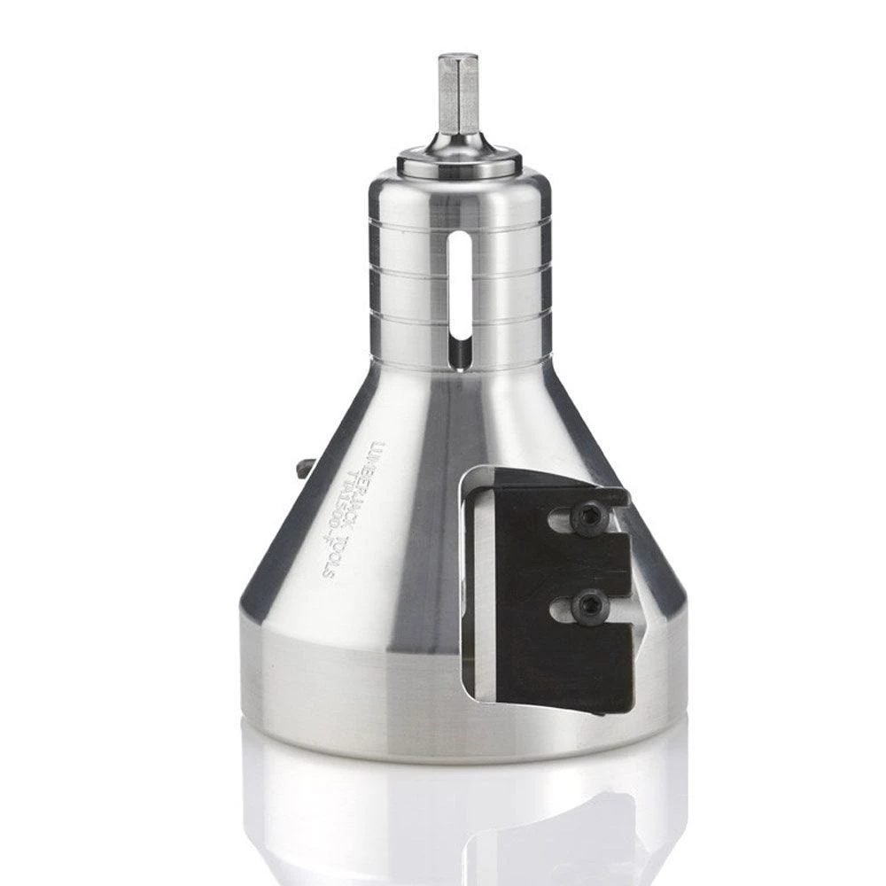 These heavy-duty, state-of-the-craft cutters produce perfect tenons with 60° tapered shoulders for the sturdiest-possible log furniture construction. The funnel shaped, self-centering design ensures flawlessly shaped tenons, and dual precision-ground blades cut twice as fast as single blade models and stay sharp longer. Plus, as part of the cutters’ exclusive “IN-SIGHT” visual measurement system, slots along the shaft combine with radial grooves at 1/2″ intervals to let you to see your progress and measure tenon length while you cut. Body is CNC machined from aircraft aluminum for maximum strength and minimum weight. Available in three sizes (1″, 1-1/2″, and 2″) corresponding to the diameter tenon that each will cut.