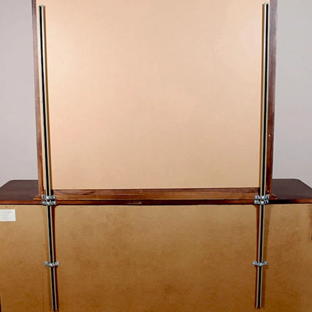Heavy-duty supports won’t bend or twist during moves or under heavy mirror weight. Adjust up or down to meet the desired height by loosening the machine screw. Each support includes three mounting brackets and wood screws.