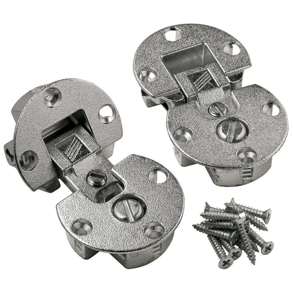 Permits drop front to travel 90° to produce a flat surface flush with the cabinet bottom.