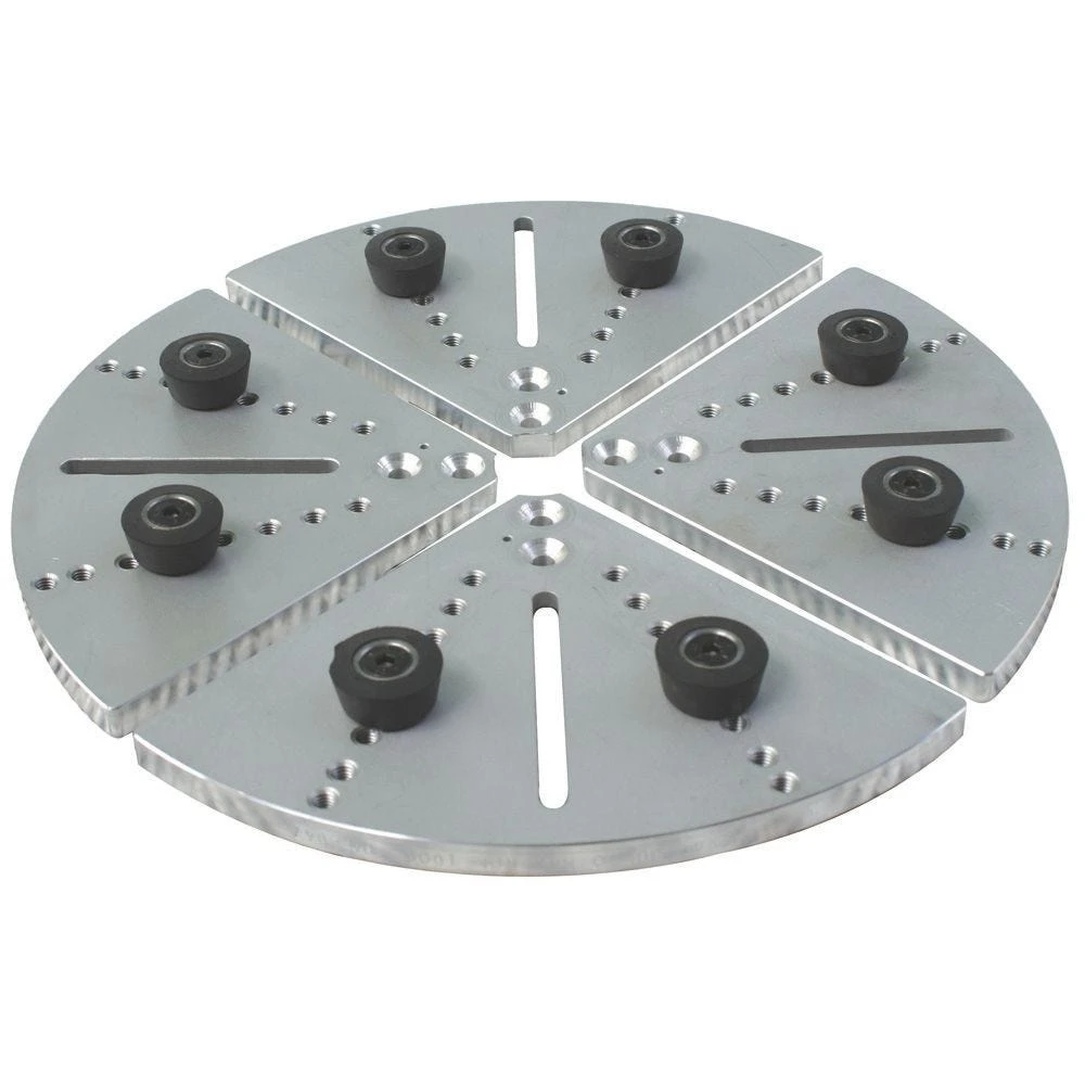 With a massive 4-1/2″ diameter body, the Stronghold chuck is perfect for heavy turnings that require maximum stability and gripping power. It’s key-operated, so one-handed adjustments are simple and fast. A 5/1 ratio ensures solid holding power, while the patented over-extension prevention system ensures that the base jaws will never come loose during operation. A wide range of accessory jaws are available to cover all your turning requirements. The #3 Jaws have the mass and size necessary for large bowls and vases. The profiled jaws provide maximum gripping power with minimal damage to the piece. Spigot Jaws are machined long and deep for a better grip on smaller parts. Both outside and inside surfaces of the jaws are serrated to grip the work piece. The Jumbo and Mega-Jumbo Jaws are solid machined aluminum plates. Their unique combination of slots and tapped holes accept rubber grippers for holding an infinite number of round, oval or square shapes. Choose a separate taper-lock adapter from the related products below.