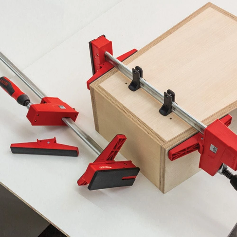 The Bessey KR-AS Pivoting Jaw Faces swivel 15° left and right, allowing you to easily clamp tapered or irregularly shaped assemblies. The jaw faces are covered with a grippy material to prevent slippage. No tools are required for mounting to K Body REVO models KRE, KR, KREV and KRV. Simply remove the standard no-mar jaw pads and slide the pivoting jaw faces on in their place. 2 jaw faces per set.