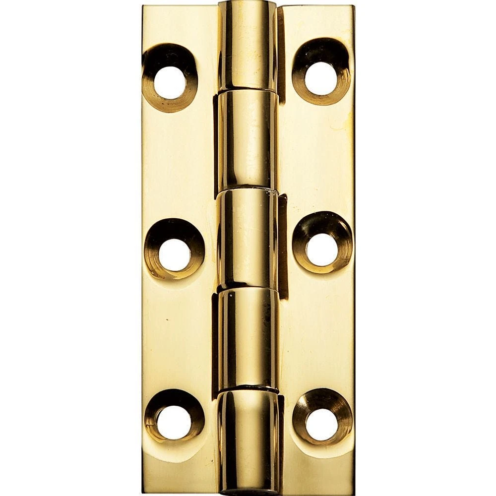 These Polished Brass Narrow Fixed Pin Hinges for the exacting craftsman are machined to exact specifications, giving you a high-quality hinge that provides strength and performance. They measure 2″ long by 7/8″ wide with a generous leaf thickness 1/16” thick. The pin hole and knuckle interfaces are drilled and milled, enabling firm yet smooth leaf movement and minimal wear between knuckles.