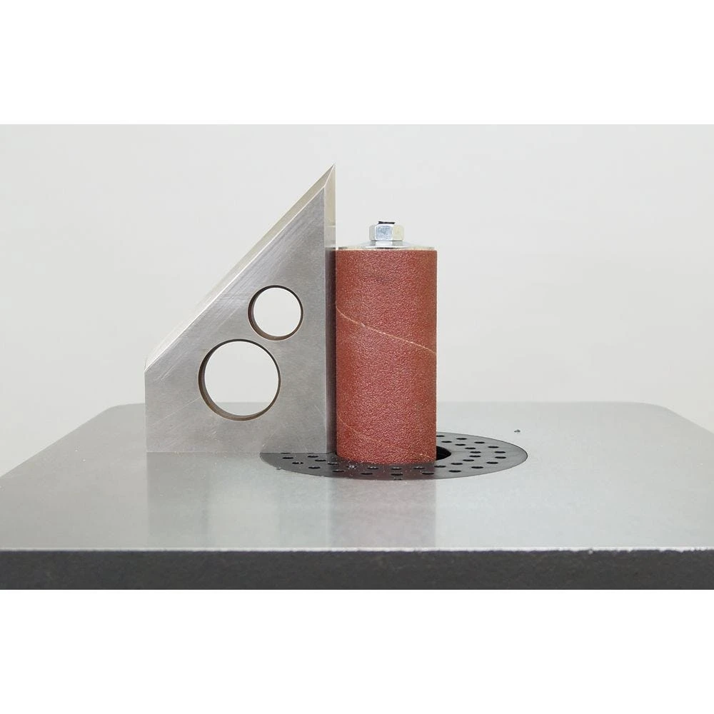 - Machined, cast iron table measures a big 14-3/4” x 14-3/4” and tilts from 0° to 45° for sanding angled surfaces