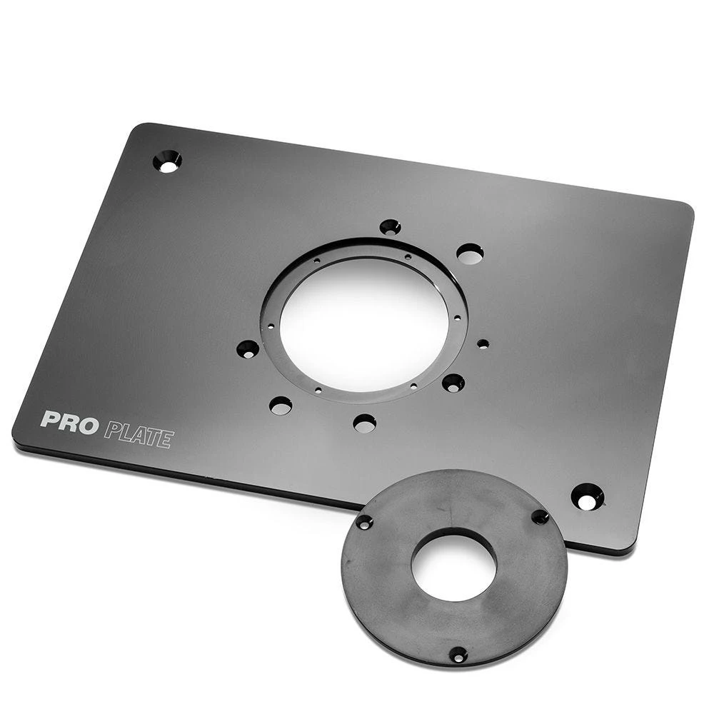 A router table insert plate makes it easy to lift your router out and set it on the table for comfortable bit changes, height adjustments, maintenance and even to use your router free hand or with a straight edge guide. These router table baseplates save you from a lot of backaches, squinting and bumps on the back of the head from stooping under the table. Our Aluminum Pro Plates are CNC-machined for flatness, will not sag, and are generously dimensioned at 8-1/4” x 11-3/4”. They work equally as well with shop-made router tables as they do with Rockler tables, and fit both our current tables and most of our old tables as well. Additional insert ring sizes are available (sold separately). Plates A & B accept Standard sized rings. Plates C & D accept Large sized rings.
