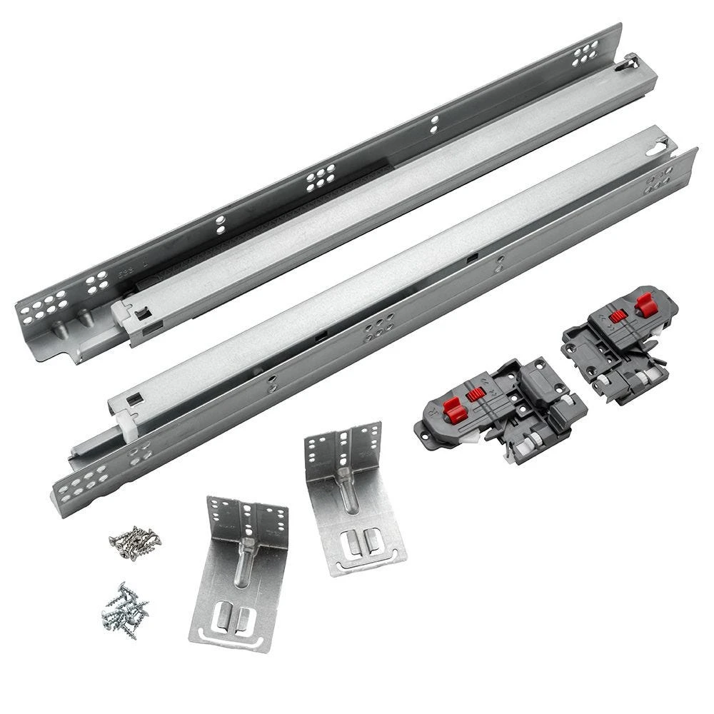 Our Undermount Slides combine a smooth glide with soft closing that engages in the final few inches of travel, easing the drawer back into the cabinet. Full-extension travel provides access all the way to the back of the drawer, while the undermount design means the drawer can be nearly as wide as the cabinet opening, ensuring maximum usable drawer space. Not only that, the slides are totally concealed under the drawer, highlighting the natural beauty of your wooden drawer boxes. Each pair of slides includes all necessary clips and mounting hardware, plus a pair of brackets that mount to the back of the cabinet for use with face frame cabinets. Full installation instructions included. Rockler Centerline Lifetime Warranty Information.