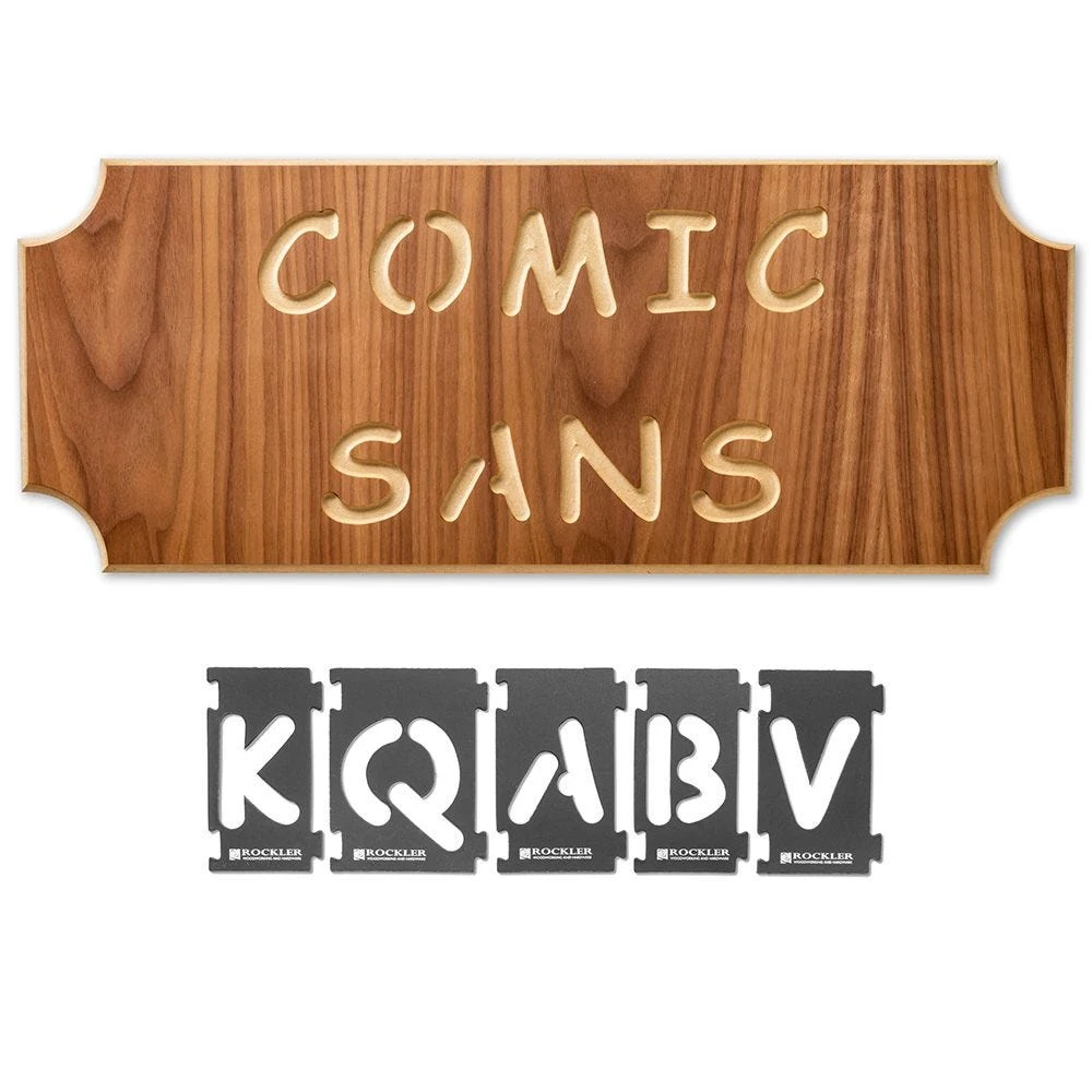 The templates interlock to form a stable pattern as you rout signs with appropriate carbide router bits and bushings (3/8″ for 2-1/4″ kits & 5/8″ for the 4″ Kits ). Secure patterns to your work surface with masking tape, Self-Adhesive Discs, or double stick tape (sold separately). Each Letters Kit includes a total of 40 letters with duplicates of common letters and three spacers. Each Numbers and Symbols Kit includes two each of 0-9 and 9 common symbols including @ and &. Requires the use of a plunge router that accepts standard 1-3/16″ template guides. The Interlock Signmaker’s Kits require either a 3/8” (#33967, sold separately) or 5/8” (#30933, sold separately) guide bushing, as well as a 3/8″ (#36676, sold separately) or 5/8″ (#32443, sold separately) signmaking router bit.