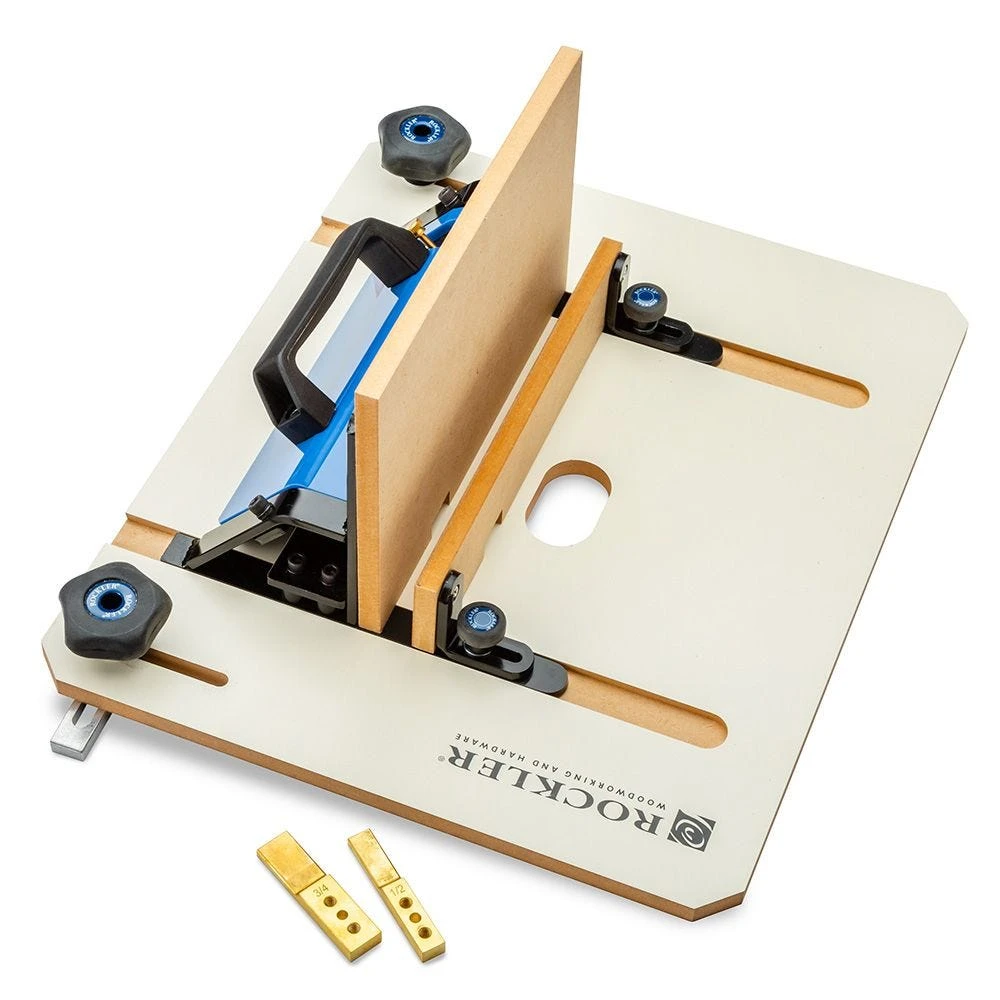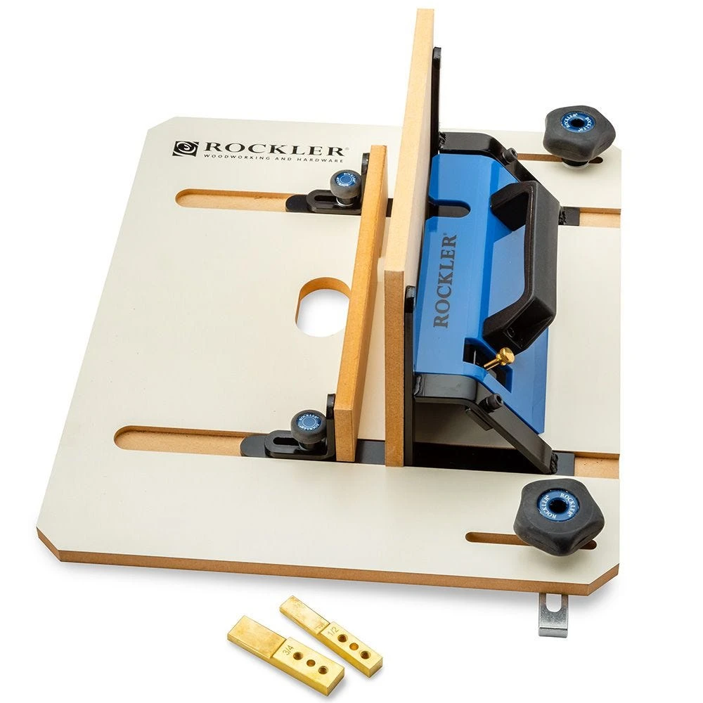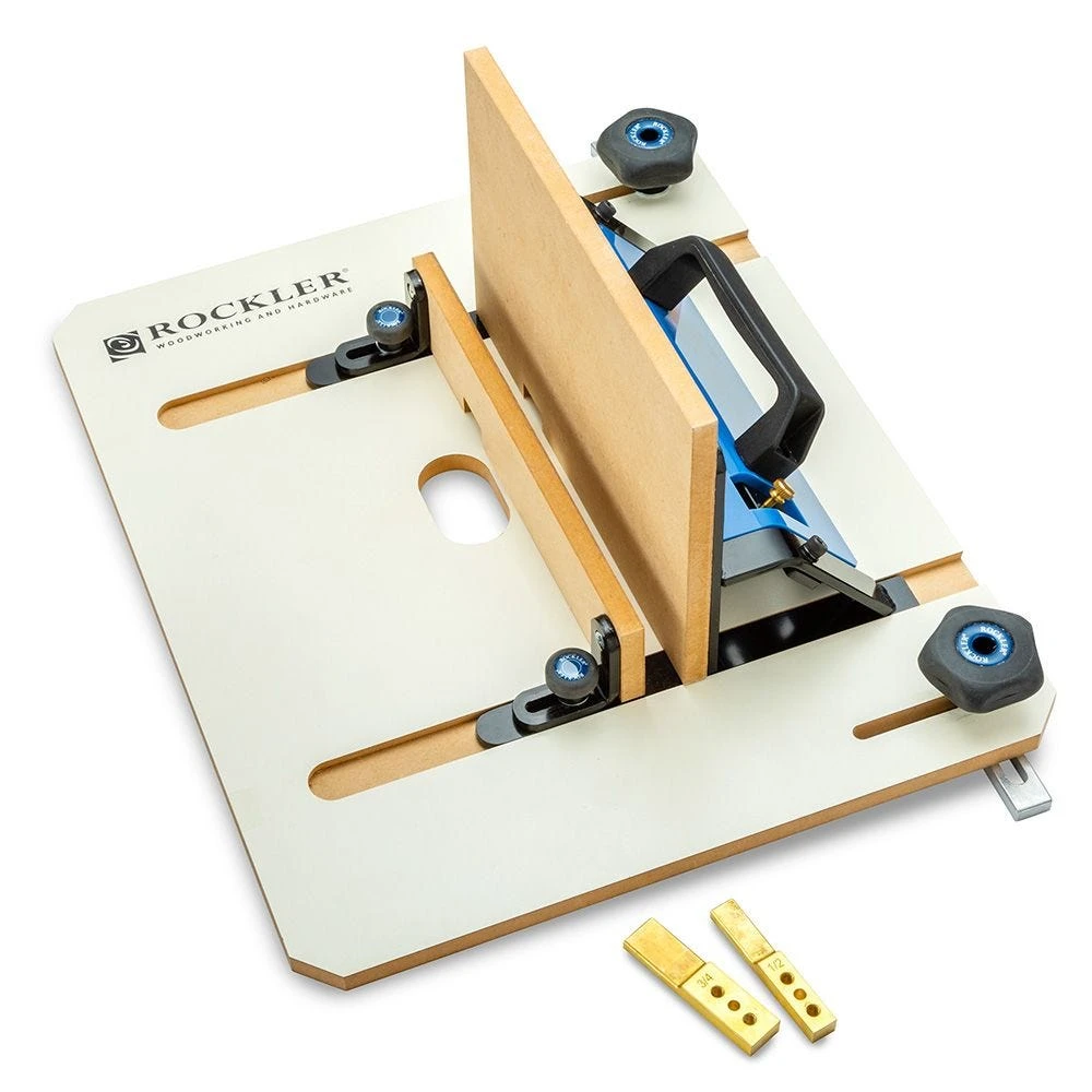 Box joints create strong, attractive corners on large chests, cabinets, boxes and more. This design uses solid brass indexing keys that stay engaged with your workpiece as it slides past the router bit, preventing slippage and ensuring precise results. Just use the knobs to secure the MDF base of the jig into the miter slot of your router table—the sturdy steel sled then lets you guide the workpiece past the bit with complete control. The jig includes precision-machined brass indexing keys to give you air-tight joints with either 1/2” or 3/4” fingers. The vertical face of the sled features two sacrificial MDF boards that securely sandwich the workpiece and provide backup support for reduced tearout. Larger pieces can be supported easily by adding a 1/2” piece of material to the left and right side of the jig platform. The jig is easy to set up and detailed instructions are included.