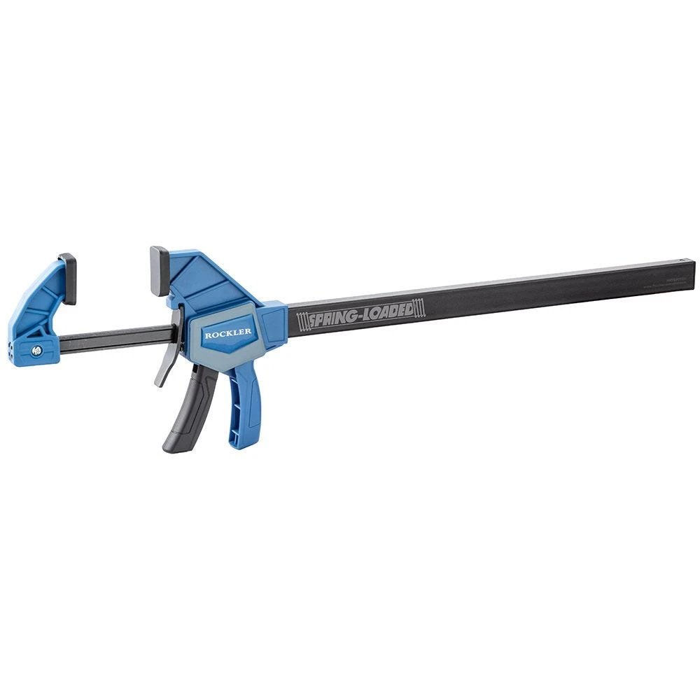 - Single-finger release trigger activates patented spring mechanism that closes the jaws for fast one-handed clamping