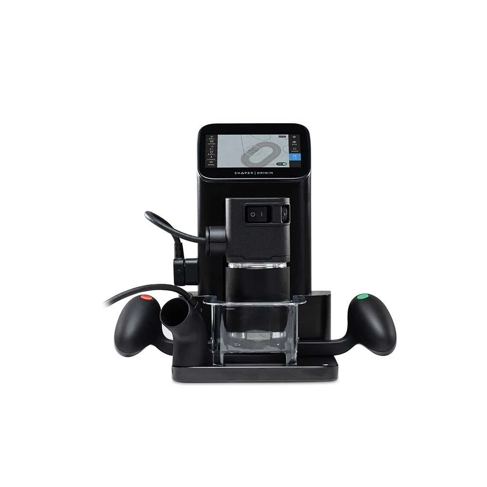 Say hello to portable precision: Shaper’s revolutionary Origin computer-assisted handheld router. Just follow the toolpath on the screen! Provided you stay in the general area, the spindle will auto-correct 100x/second to keep the cutter within 1/100” of the line. If you wander too far off, the bit will automatically retract to prevent damage. Since it is handheld, it’s both portable and exceptionally space-efficient for small shops. Origin’s touch-screen interface lets you select designs and cut dimensions on the fly, and it automatically calculates toolpaths—no programming required. Load designs via WiFi from the ShaperHub website, from a computer with the included USB stick, or design your project right on the screen. Dimension panels, cut complex shapes without templates, rout hinge mortises and cut joinery, all with just a few screen taps.