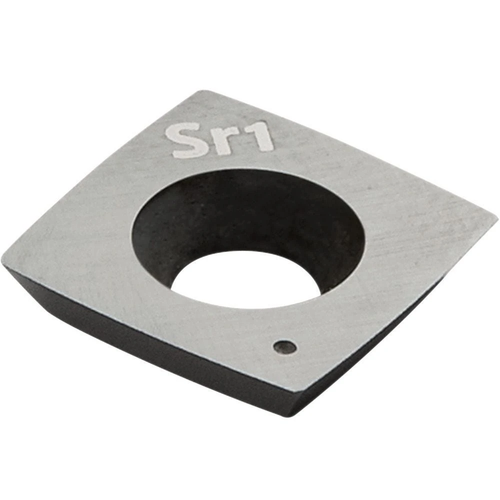 Take a close look at the edge of this carbide insert and you’ll realize it’s not actually square. Instead, each of its four edges is slightly crowned with a 2” radius. This subtle change makes the cutter excellent for smoothing cuts. Use it with the corresponding