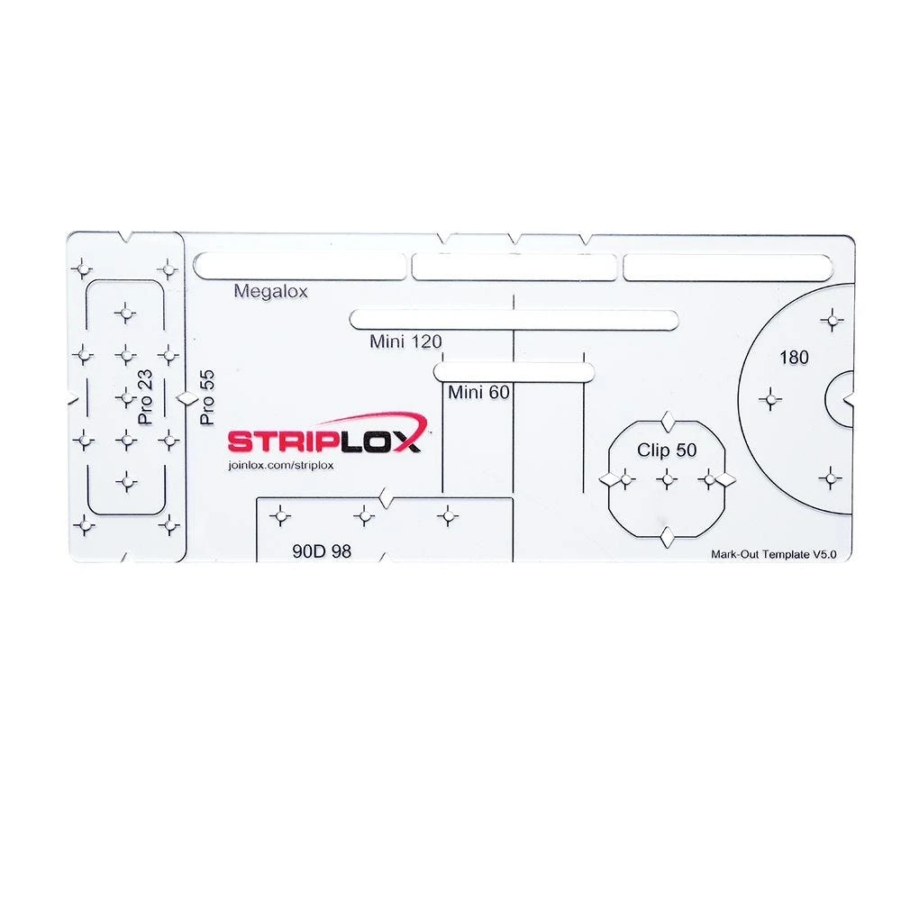 The Striplox Mark–Out Template speeds up the process of installing a wide range of Striplox connectors. Just use the notches and markings to line up the template, then make your marks with a pencil through the holes. Made from tough, durable clear plastic.