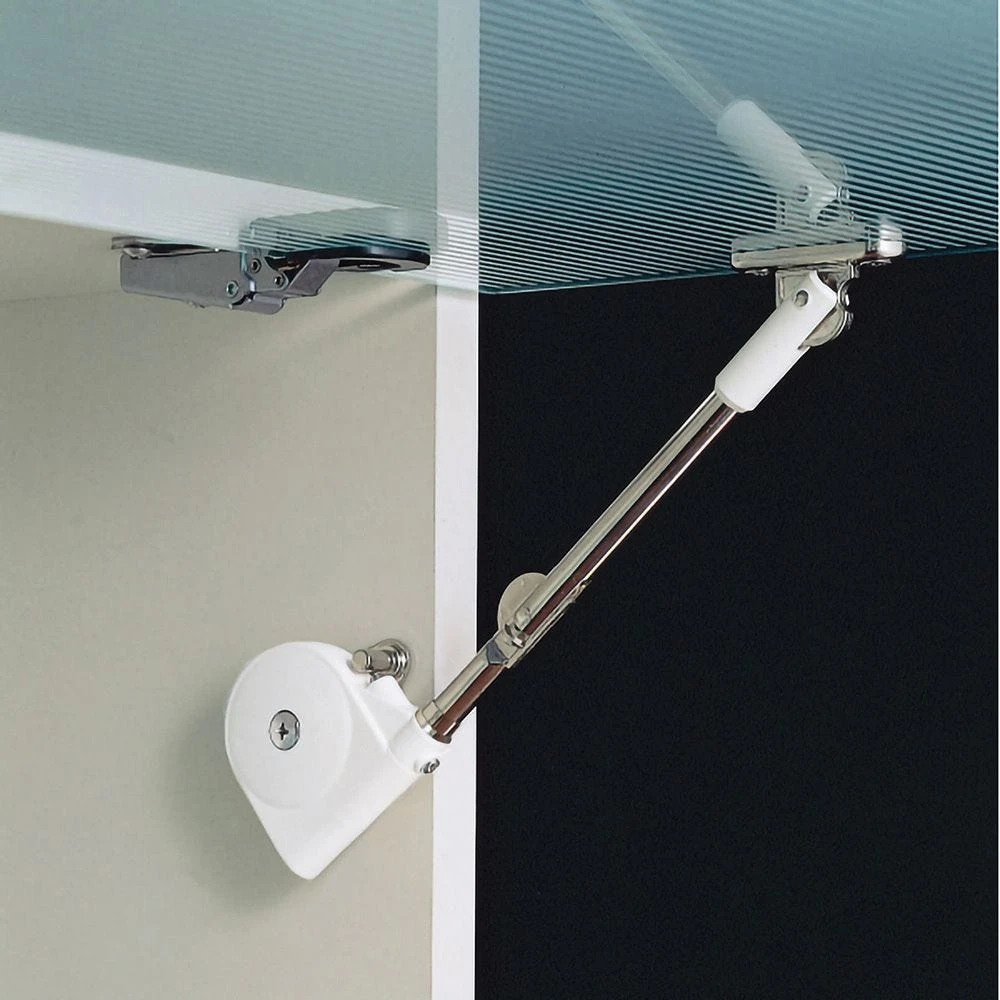 Use Sugatsune SDS-301N Soft-Down Stays to keep chest lids and lift-up cabinet doors from slamming shut. The soft-close mechanism engages early on and eases the flap gently and quietly closed. When used for upward-swinging doors, the stay keeps the door open at the top of its travel, allowing you to use both hands to search the cabinet for the items you need. Use with concealed, piano or butt hinges (sold separately). Non-handed—can be installed on either the right or the left.
