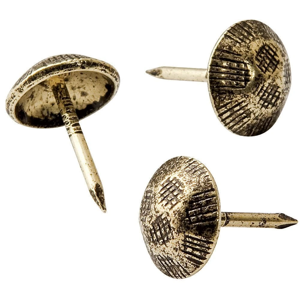 Save time and give your upholstery a great look with your choice of Upholstery Nails! Using Upholstery Nails eliminates sewing time yet gives your project the hold it needs to keep any fabric, even leather, from slipping or moving. Both styles come in an attractive brass with your choice of a hammered head in antique brass or a plain head in dull brass.